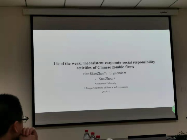 我院会计学系教师韩少真博士作为第一作者与其合作者的共同论文《Lie of the weak: inconsistent corporate social responsibility activities of Chinese zombie firms》入选本次会议,并在分论坛进行了宣讲。该论文将企业的社会责任活动区分为披露(言)和履行(行),基于政府对僵尸企业承担多元化社会责任而给与更多支持的制度背景,利用制度理论、合法性理论和利益相关者理论分析了僵尸企业和非僵尸企业社会责任活动的差异。利用中国上市公司的数据,采用修正的FN-CHK模型识别僵尸企业,发现僵尸企业比非僵尸企业更不愿意发布社会责任报告。进一步,对于发布社会责任报告的公司,僵尸企业的社会责任披露水平和非僵尸企业没有显著差异,但社会责任履行水平却显著低于非僵尸企业。这表明僵尸企业社会责任活动存在披露大于履行(言行不一)的伪社会责任状况。在利用biprobit模型控制内生性、三阶段Heckman模型同时控制自选择和内生性、不依赖于外生工具变量控制内生性等方法的检验中,上述结论依然成立。同时,上述发现在广义倾向得分匹配法、更换僵尸企业的识别模型和社会责任履行的测量方法等稳健性检验中依然保持一致。最后,该文还从外部支持、产权性质、社会责任鉴证等方面展开进一步的异质性分析,以期深入揭示僵尸企业伪社会责任的内在成因。该文的结论对于僵尸企业处置、社会责任监管和企业可持续发展等方面具有重要的政策启示。该篇论文引起了参会学者的积极兴趣,各位学者围绕理论分析和解决内生性的多种方法进行了充分的交流,这对于论文进一步的发展和完善具有重要意义。