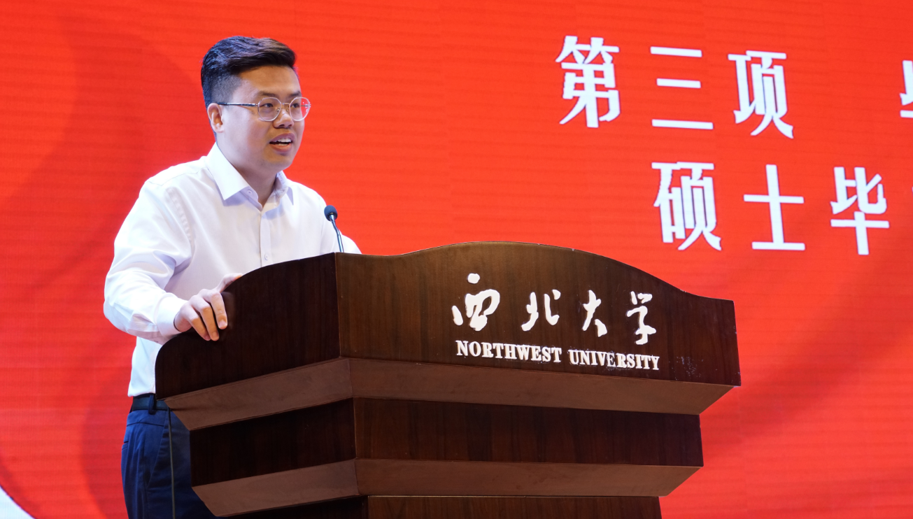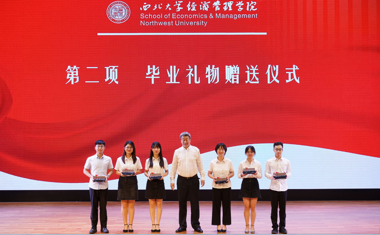 最后,院长吴振磊教授为所有毕业生送上祝福,并谈到学院为毕业生送的书签,希望毕业生们继续在数字化时代中读有纸之书,在实践中读无纸之书,不断创造人生辉煌。他对即将毕业的同学们讲到,要善于认识大势,勇于承担时代使命,从中思考自身发展的定位,始终秉持“公诚勤朴”之校训,实践“经世济民”之初心;善于认知自身,勇于挑战人生极限,勤字当头,久久为功,不断开拓人生新境界;善于感恩圆梦,勇于承担人生责任,感恩父母,回馈家庭。最后,他希望同学们以奋斗的青春创造美好生活,以奋斗的青春浇筑青春之中国。