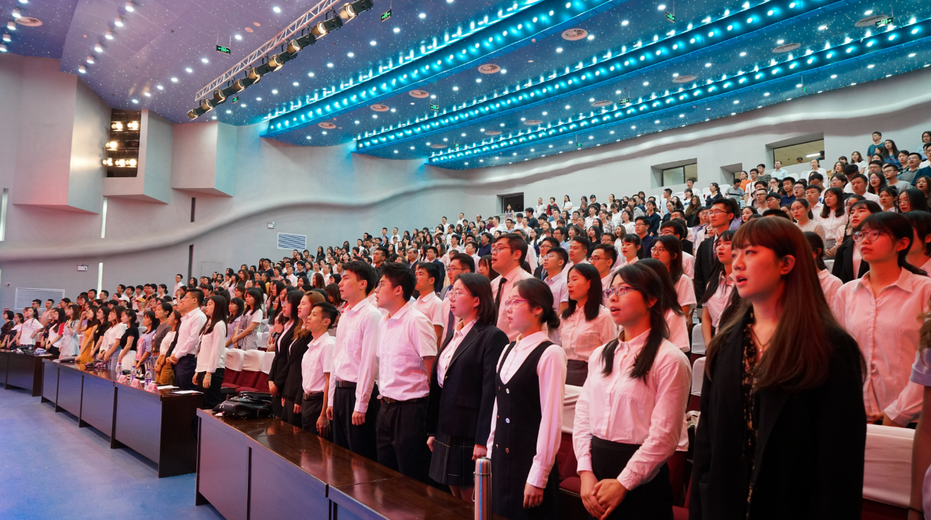 现场师生饱含深情齐唱校歌,院党委书记杜勇宣布2019届毕业生毕业典礼正式结束。