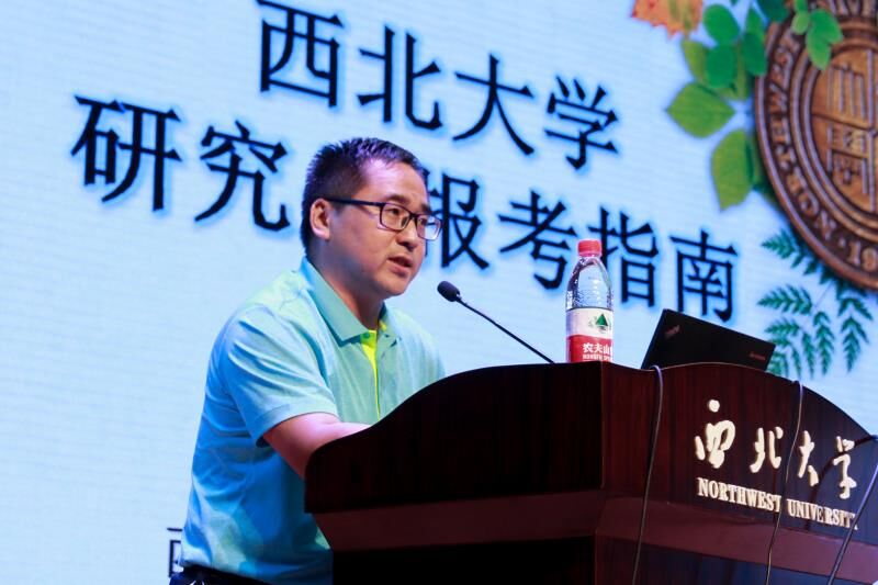研究生院招生办冯建涛主任向同学们普及了研究生入学考试的相关概念,介绍了学校研究生教育平台与资源、招生工作相关政策,以及解读了同学们考研中经常出现的一些疑问。他通过分析西北大学及经管院近年来研究生录取情况的数据统计,强调考研对学生未来发展的重要性,并鼓励同学们努力学习、积极备考。