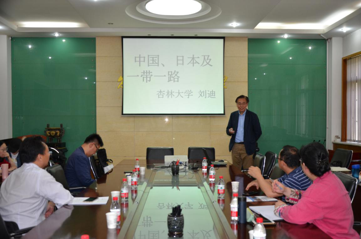 5月30日下午,受西北大学国际合作部邀请,日本杏林大学刘迪教授莅临我院做了题为“中国、日本及一带一路”的讲座。本次讲座由康蓉副教授主持,学院师生代表40余人参加了本次讲座。