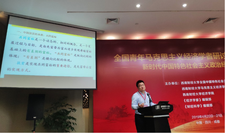 4月20-21日,由西南财经大学全国中国特色社会主义政治经济学研究中心、西南财经大学经济学院、西南财经大学马克思主义经济学研究院共同主办,《经济学家》、《财经科学》杂志社协办的“全国青年马克思主义经济学者研讨会(2019年)”在成都召开。来自中国社会科学院、中国人民大学、南京大学、复旦大学、南开大学、武汉大学、厦门大学、四川大学、西北大学等全国知名高校和研究机构中青年专家代表,以及《马克思主义与现实》《政治经济学评论》《当代经济研究》《经济纵横》等知名期刊杂志和出版社负责人等80余人参加了本次研讨会。