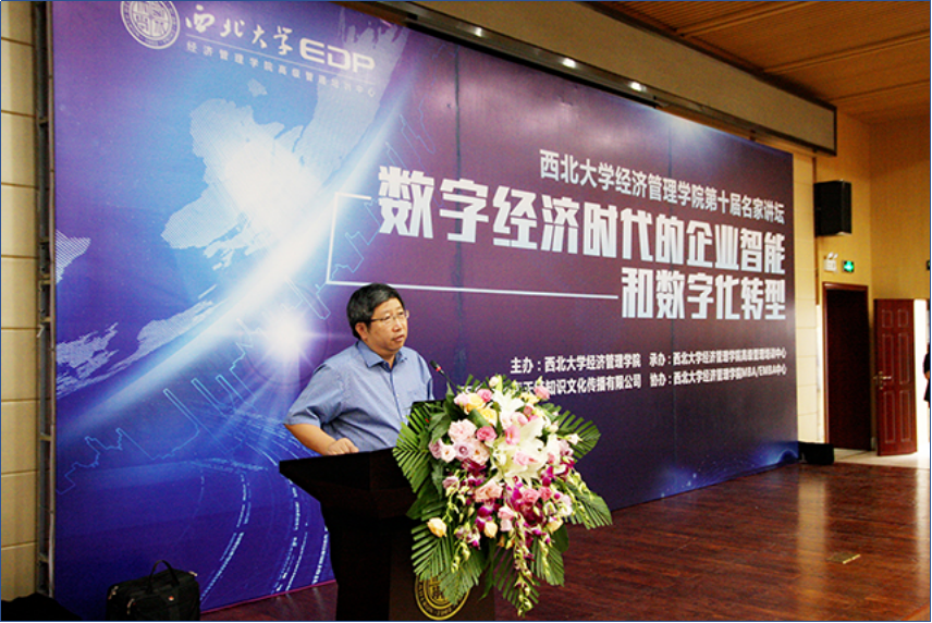 学院党委书记杜勇在致辞中代表学院对出席活动的来宾表示热烈的欢迎。他说,学院举办名家讲坛,就是要将学术和产业的新思想、新理念传达给企业界,助力陕西经济的转型升级。他说,2017年是西北大学建校115周年和经管学院建院105周年,学院将始终坚守教书育人的神圣使命,秉承心怀天下的家国情怀、自强不息的奋斗精神、求真务实的科学精神和融会贯通的宽大胸怀,充分发挥自身学科优势,与企业界通力合作,通过项目开发、企业培训等多种方式助力企业发展,为西部地区经济社会的发展做出贡献。