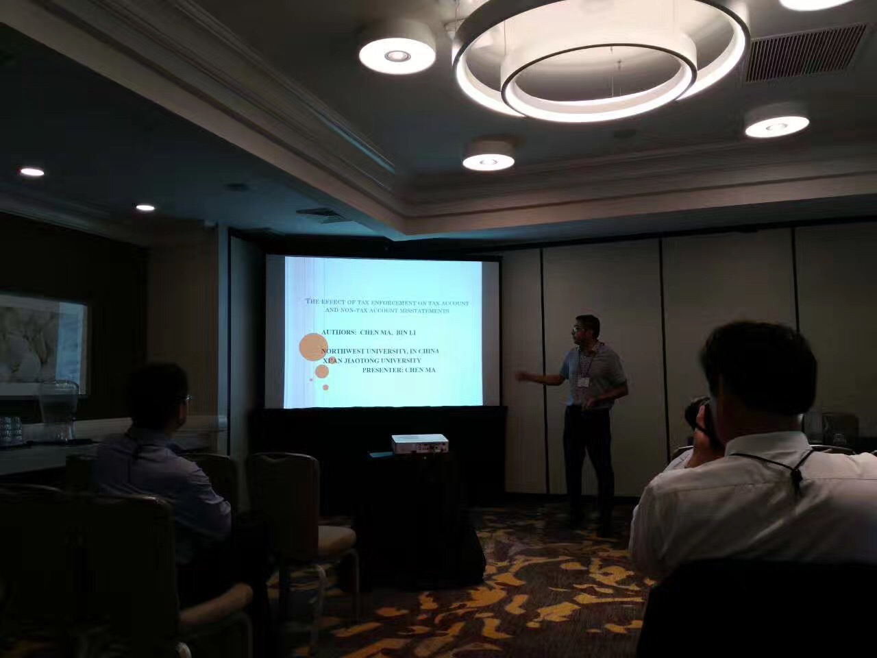马晨副教授于8月9日在分会场Accounting Quality in China做了题目为“The Effect of Tax Enforcement on Tax Account and Non-Tax Account Misstatements: Empirical Evidence from China”的报告,围绕税收征管、会计差错进行了深入的探讨,引起了与会学者的广泛关注和兴趣,并与相关科研人员交流了不同的看法和认识,对共同感兴趣的问题进行研讨,取得预期的效果。其中,来自University of Texas at El Paso的Giorgio Gotti副教授对论文进行了点评。他所提出的建设性意见将提升文章质量。韩洁博士于8月7日在分会场做了题目为“Interlock Concentration and Analyst Forecast Accuracy: Evidence from China”的报告,报告主要围绕中国制度背景下分析师选择跟进由连锁董事联结的公司是否会获得规模效应进行了分析和论述,通过和相关领域学者的探讨,将有助于论文质量的进一步提升。此外,二人还听取了其他分会场的报告内容,比如审计、高管薪酬、公司治理等等相关内容。通过学术交流,在母子公司关系、审计等多方面拓宽了研究思路,从而为今后进一步开展研究和学术交往奠定了基础。