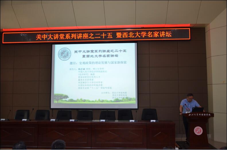 学术报告之前,任保平院长首先对陈彦斌教授的情况做了简要介绍,并主持聘任陈彦斌教授为“西北大学兼职教授”仪式,人事处副处长王思锋教授为陈彦斌教授颁发证书。在学术报告中,陈彦斌教授首先对宏观经济增长理论的核心概念——“宏观政策”的内涵和外延做了准确的界定,提出有别于货币政策和财政政策的狭义宏观调控,中国的“宏观政策”的概念较为宽泛,进而从萧条经济学的视角看宏观政策的理论发展,指出目前围绕宏观政策理论研究,可以进一步关注萧条、贫富差距、家庭与企业债务等问题。