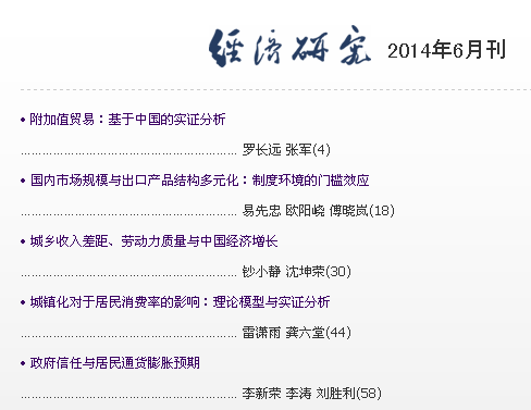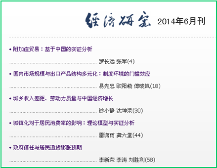 近日,我院数理经济与统计学系青年教师钞小静副教授以第一作者身份在权威期刊《经济研究》2014年第6期发表了文章--《城乡收入差距、劳动力质量与中国经济增长》,全文约2万字。