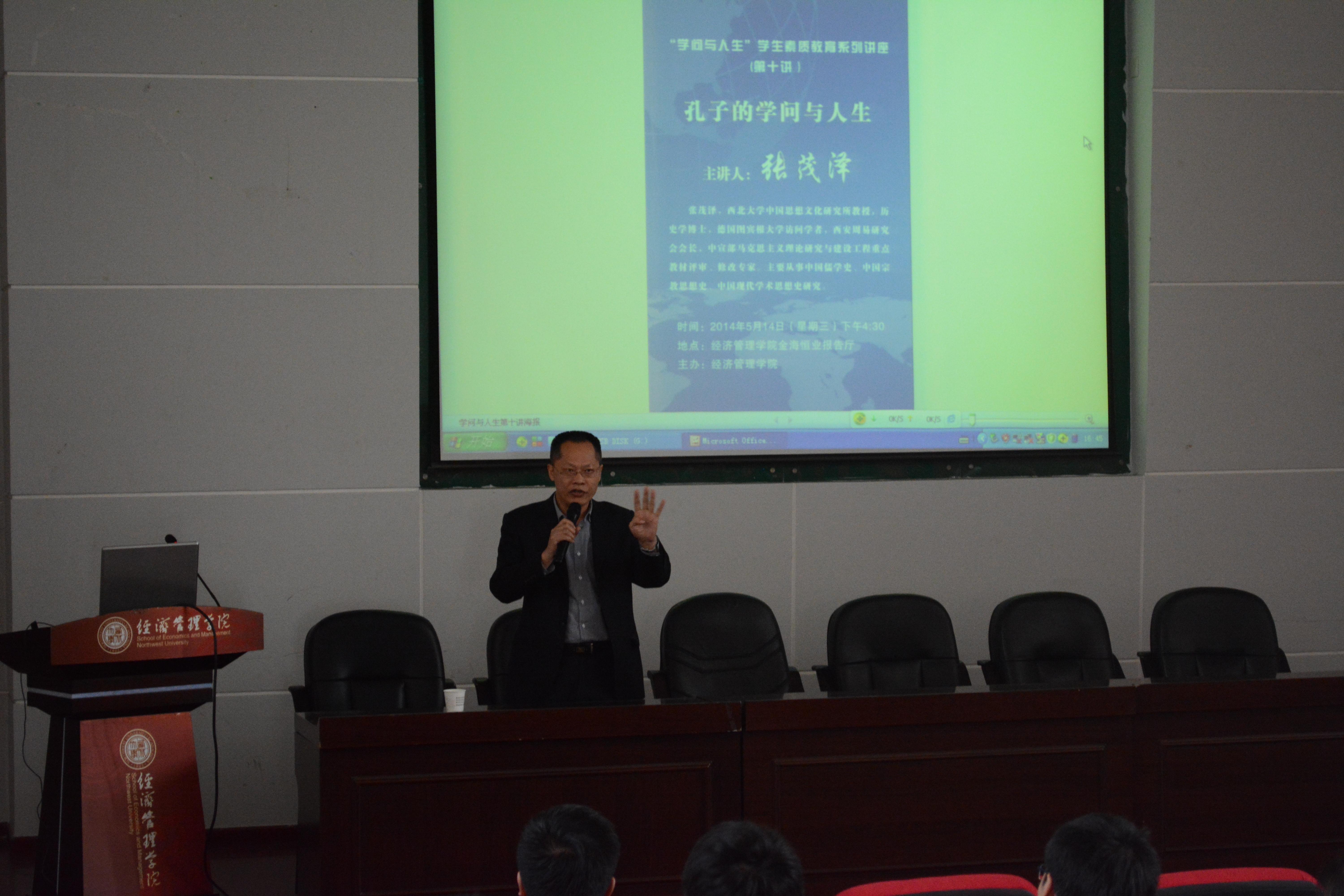 5月14日下午4:30,我院“学问与人生”素质教育系列讲座第十讲在金海恒业报告厅举行,我校中国思想文化研究所张茂泽教授应邀作了题为《孔子的学问与人生》的讲座。讲座由院党委书记李国良主持,副书记李一凡、部分辅导员和本科生共200余人到现场聆听了报告。