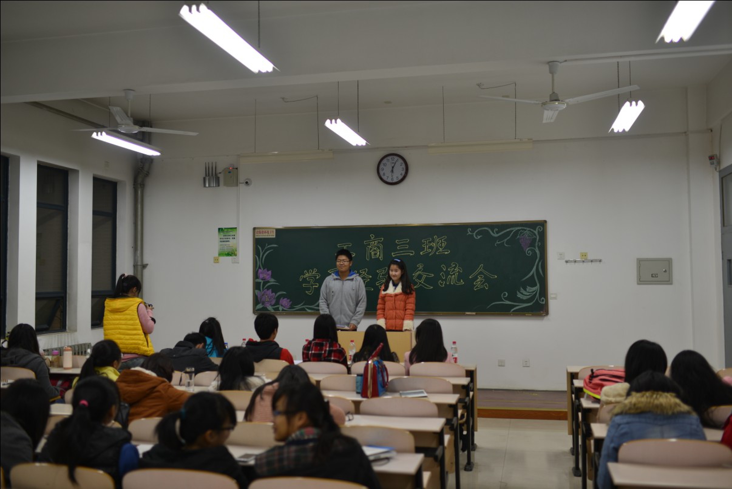 为了帮助2013级新生尽快适应大学生活,掌握正确学习方法,进一步调动学生学习的积极性,营造珍惜时间、刻苦钻研的氛围,夯实学院人才培养基础。学院分别于11月19、20日下午,11月21日晚上3个时间段内,组织全院8个系12个新生班级在南校区各教室开展了新老生学习经验交流会,13级全体新生共435人参加了交流会。另邀请了王颂吉、张弦等6名优秀博、硕士研究生,饶佳艺、刘磊等54名在上一学年获得国家奖学金、校优秀学生标兵、一等奖学金的优秀本科生作为嘉宾暨老生代表参加交流会,同大一同学分享学习经验。院党委副书记李一凡和各年级辅导员老师参加了本次活动。