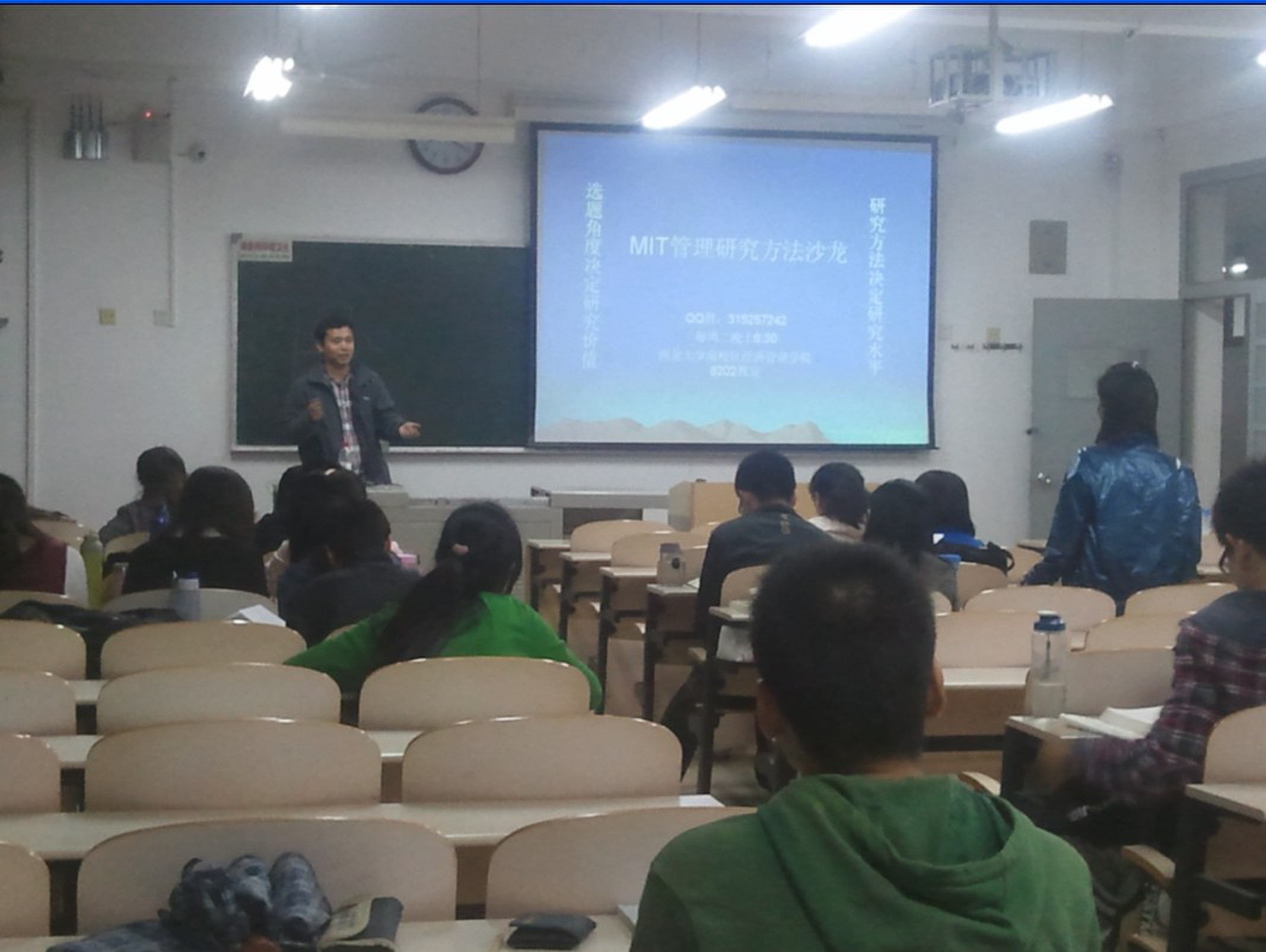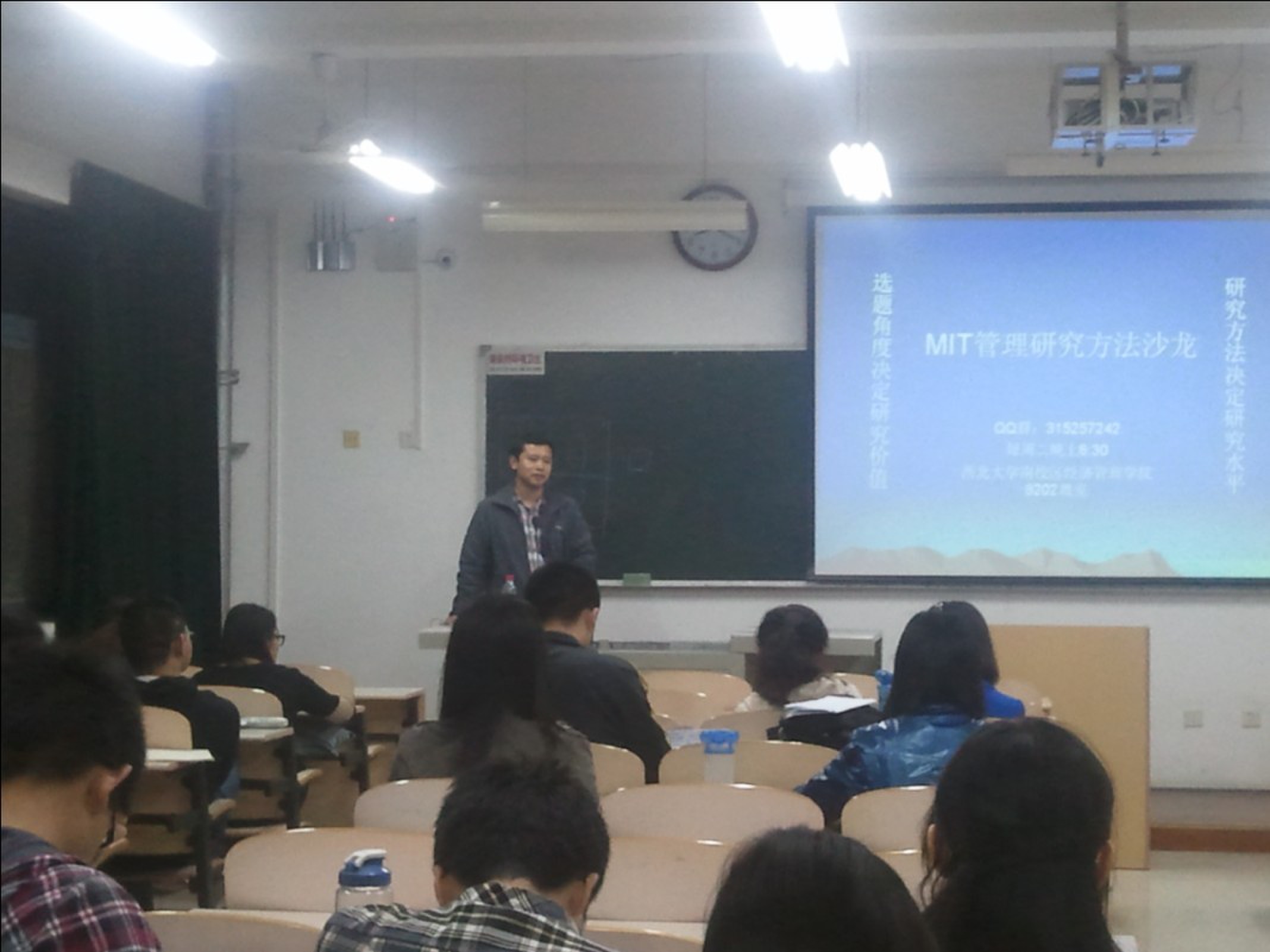 10月16日晚上7点,“经曰管云”系列学术论坛第二十二讲暨第七届研究生学术活动月学术讲座第六场在长安校区1309教室举行。我院工商管理系讲师宋思远作了题为《美国管理研究思维模式》的讲座。