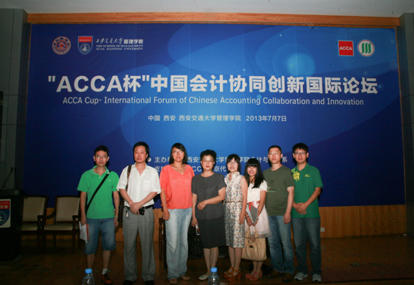 2013年7月6日,会计学系张晓明教授、吴泷教授、李辉博士、潘颖博士以及3名企业管理博士研究生应邀参加“ACCA杯”中国首届会计协同创新论坛。本次论坛由西安交通大学管理学院会计与财务系主办,ACCA北京代表处和中汇会计集团有限公司协办。第三期全国会计学术类领军(后备)人才、全国特邀高校的代表以及企业财务高管和政府部门领导80余人参加。