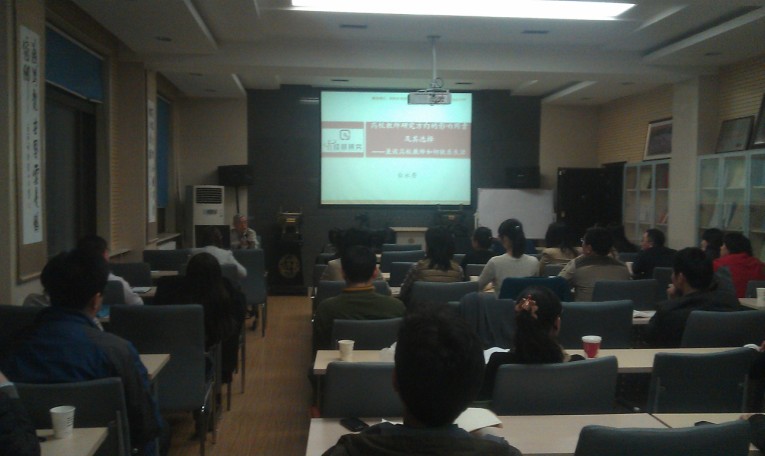 报告共分四部分:首先深刻阐述了三个观点“科研方向是高校教师职业生涯的平台”、“选择是成功的前提”、“专注是成功的保障”。其次,系统讲授了研究方向的影响因素,包括自身因素、工作因素、社会因素等。第三,结合自身的教学科研经历,阐述了选择方向就是选择一生幸福。第四,讲了五点体会。一是良好的心态是全家幸福的基础;二是自然是最高境界;三是无功利性就是快乐;四是双赢是团队可持续发展的条件;五是成功是奉献的结果。活动最后,白老师与青年教师就研究方向的选择、快乐生活进行了互动和交流。