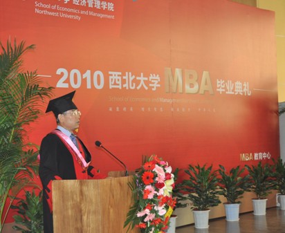 2010年7月11日西北大学MBA教育中心在校图书馆报告厅隆重举行2010年MBA学员毕业典礼。西北大学副校长、博士生导师阎宏涛教授、西北大学研究生处副处长刘景钱副研究员、776net必赢官网院长、博士生导师白永秀教授应邀参加,出席会议的还有776net必赢官网院领导、各系主任以及MBA教育中心全体工作人员。776net必赢官网常务副院长、博士生导师任保平教授担任主持。来自07级、08级的国家班、经贸委班、省班260余名学员参加了毕业典礼。