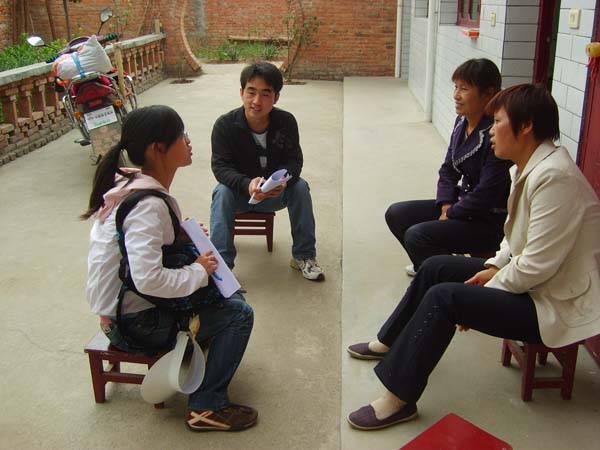 在为期两天的社会实践调研中,同学们深入到楼观镇周边的东楼村、省村对当地农户的生活质量、外出务工状况、农村教育、医疗保障以及特色产品发展等大家关心的问题进行了细致深入的调查。在调研过程中,同学们走家串巷,与农户进行拉家常式的谈话访问,了解当地农村的基本情况,收集第一手的原始资料。本次调研活动共发放调查问卷60份,回收60份,其中有效问卷56份,返校后同学们将对这些资料进行统计分析,撰写调查报告。