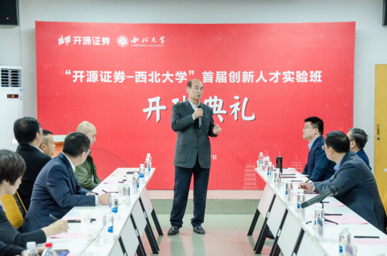 开班典礼前,王忠民教授为“开源证券-西北大学”首届创新人才实验班讲授了以“科技、产业、产业链、资本结构和证券在其中的作用发挥”为题的“开学第一课”。