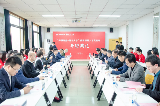 “开源证券-西北大学”创新人才实验班是我校与开源证券在新文科、新商科背景下校企协作办学的创新成果,旨在通过双方课程协同、师资协同、资源协同、平台协同的嵌入式合作,以实务技能为核心,在岗实习为依托,前沿交流为辅助,将产学协作的理念渗透于以学生为中心和以产出为导向的人才培养全过程,提高学员职业素养、强化学员专业技能、明晰学员职业规划,培养新时代金融创新人才。首届实验班30名学员由我校776net必赢官网、数学学院、信息科学与技术学院、法学院的15名2017级本科生和776net必赢官网2019级15名金融专硕研究生和MBA在校生组成,此前经历了严格的申报、筛选和面试。他们将在常规学业课程外,开展为期1年的专项培养课程,并完成开源证券岗位实习、校内实训课程和企业参访学习等内容。
