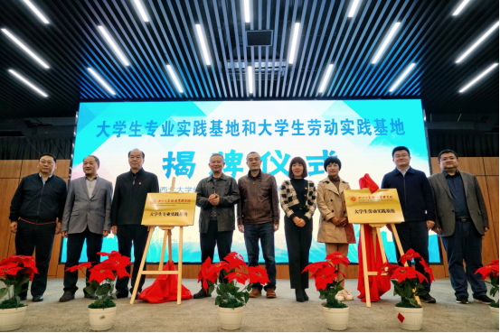 在现场西大师生和爱菊集团员工的见证下,王正斌、贾合义、惠正强、马向科、陈峰、吴振磊和爱菊集团副总经理贾婧、孟玲共同为776net必赢官网“大学生专业实践基地”和“大学生劳动教育基地”揭牌。