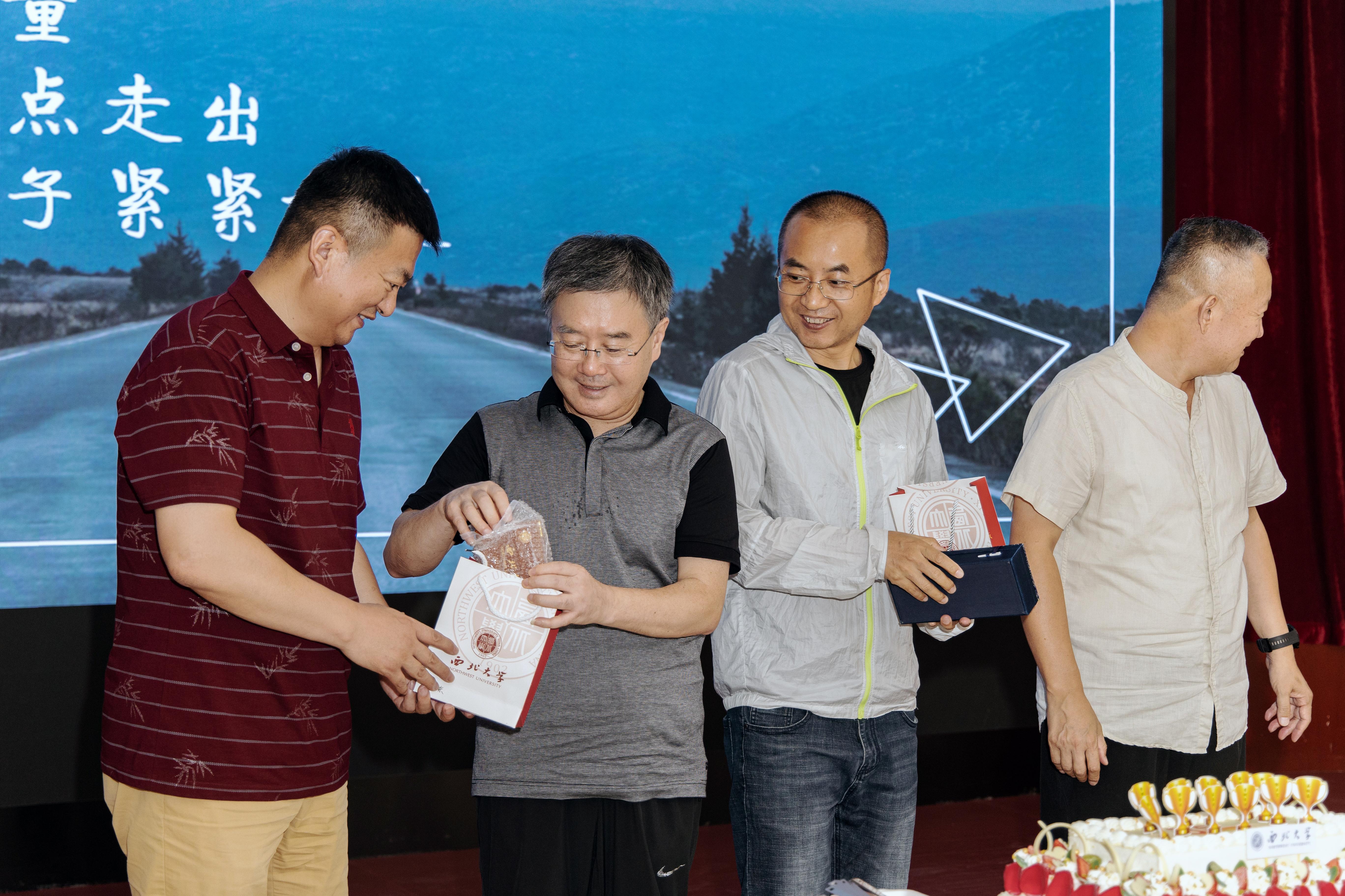 郭立宏代表学校向返校校友表示欢迎和感谢,向大家汇报了“十三五”时期学校和经管学院的事业发展情况,热情邀请校友常回母校共叙情谊。郭立宏、王正斌和吴振磊分别代表学校和学院向校友们赠送礼物。校友们向与会的老师献花,并集体为朱玉槐教授送上温馨的生日祝福。