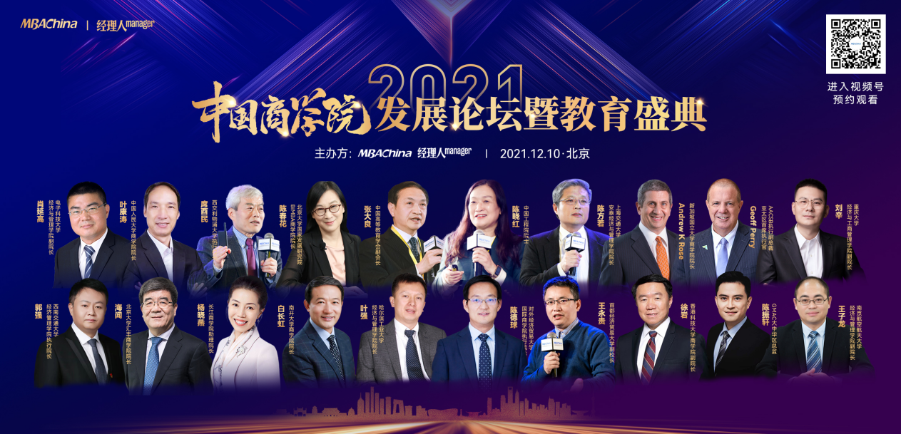 “2021中国商学院发展论坛暨教育盛典”由MBA China与《经理人》杂志联合主办。论坛邀请了全国知名商学院院长进行主题分享,探讨未来商科教育发展趋势,聚焦新型商科人才培养模式,共同传递商学院成长力量。同时,为激励和表彰优秀商科项目、团队和个人,会上颁发了多个奖项。
