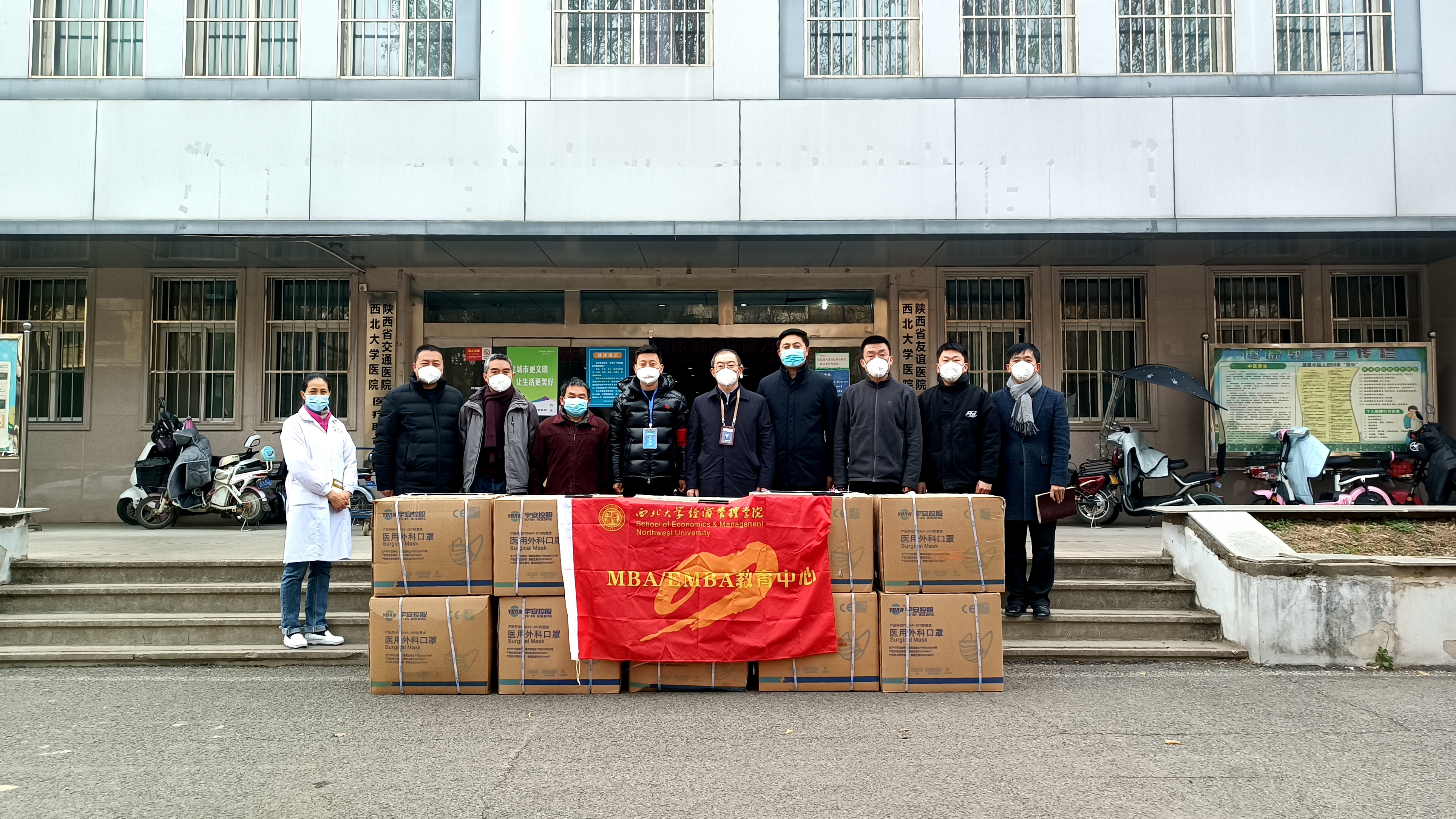 2021年12月30日,我院一名2021级MBA学员匿名向西北大学太白校区捐赠医用外科防护口罩40000个。经过两天的物资调拨与协调,30日中午12:00,这批宝贵的抗疫物资抵达了西北大学太白校区,并在太白校区校医院顺利完成了交接。
