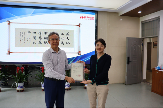 西北大学纪委副书记何翔为王屹颁发客座讲师聘书