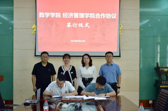 6月23日下午,我院与数学学院人才培养合作协议顺利签约。我院党委书记杜勇、院长马莉莉、副院长李辉,数学学院党委书记李长宏、院长张瑞、副院长邵勇出席了签约仪式。李辉副院长、邵勇副院长代表双方签字。