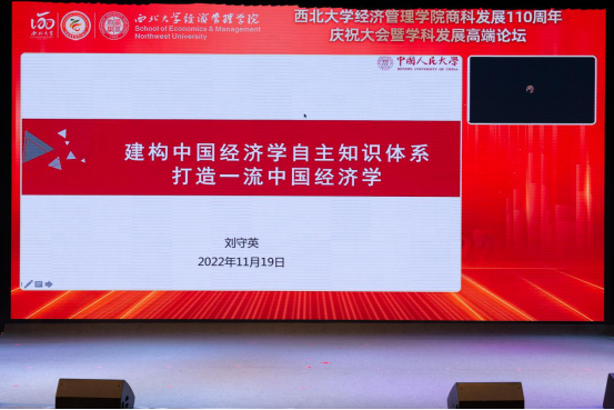 庆祝大会后,由776net必赢官网马莉莉院长主持学科发展高端论坛主论坛,中国人民大学经济学院院长刘守英教授和西安交通大学管理学院党委书记马晓彬围绕“一流引领、拔尖创新”的主题,分别做了《构建中国经济学自主知识体系 打造一流中国经济学》《西安交通大学管理学科建设情况交流》的主旨报告。