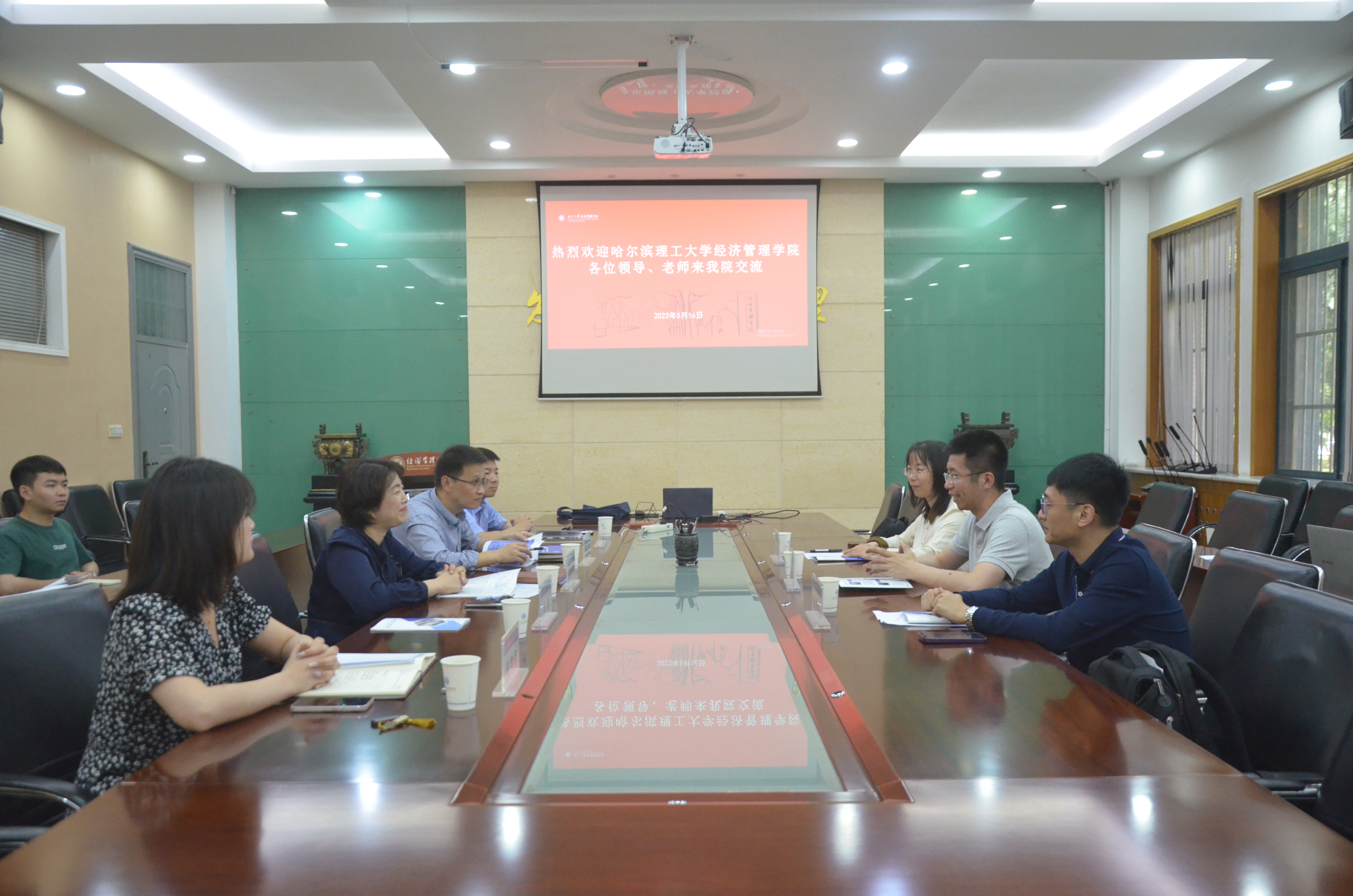 为进一步提升人才培养质量,推进高校合作交流,促进毕业生更充分更高质量就业,助力学院学科发展,5月16日下午,哈尔滨理工大学经济与管理学院副院长王卫等一行人到访我院进行研究生人才培养暨博士招聘宣讲座谈交流,学院副院长岳利萍、学院党委副书记徐自成、教师代表、研究生辅导员及博士研究生代表参加本次座谈。