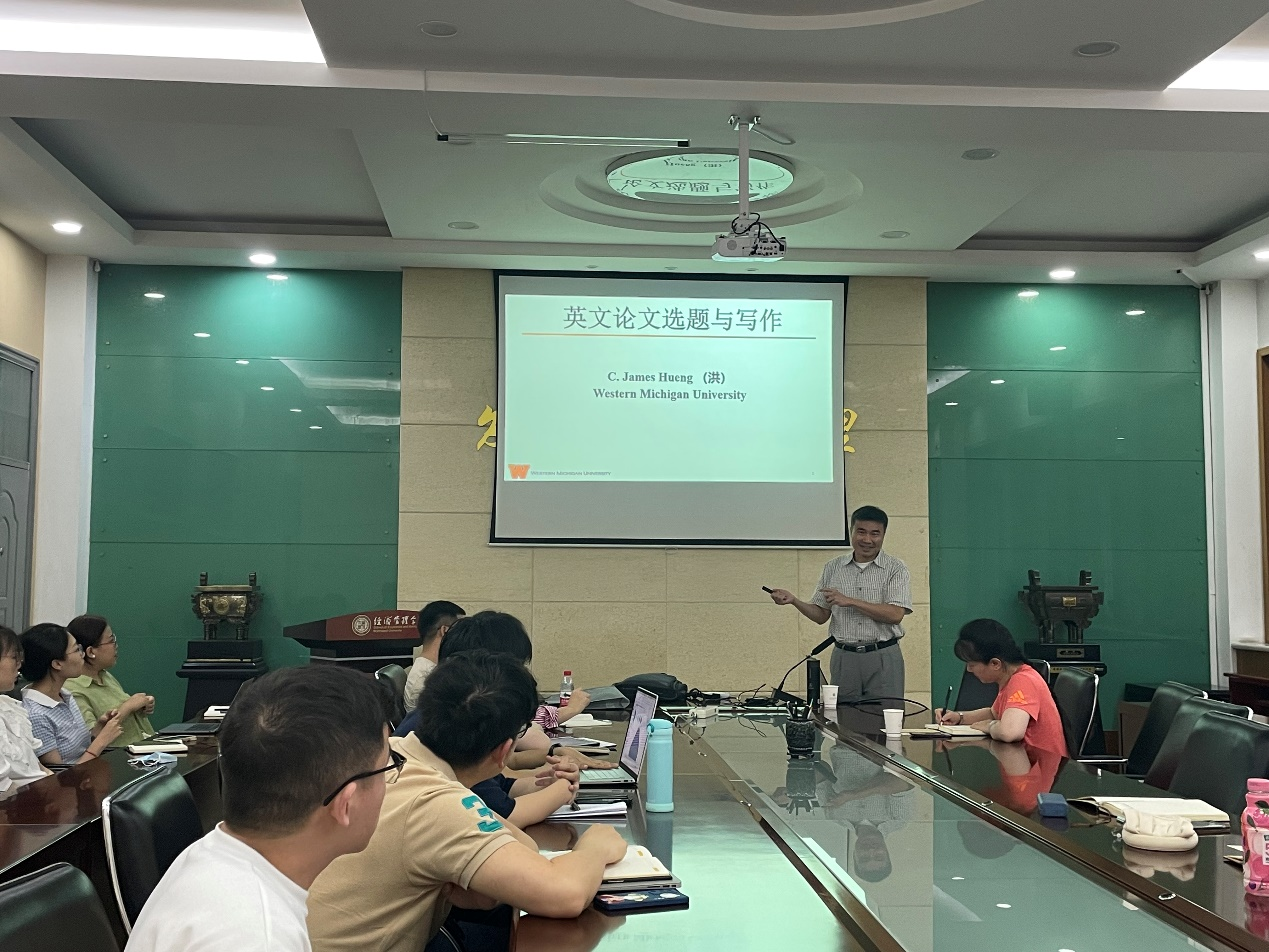 5月17日下午,学院邀请美国西密歇根大学(Western Michigan University)经济学系C. James Hueng(洪嘉阳)教授为师生开展学术讲座,题为“英文论文选题与写作”。讲座由院长马莉莉教授主持,MBA中心、EDP中心主任郭亚军等三十余名师生参加讲座。