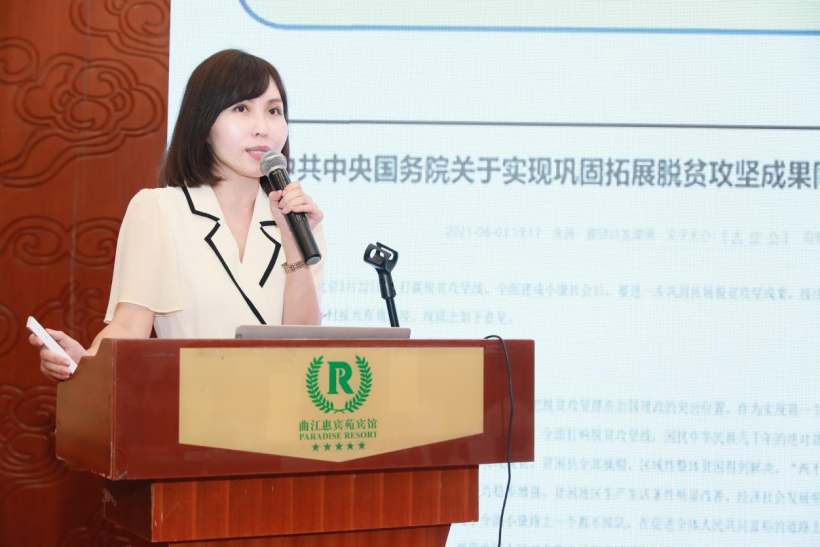 中国农业科学院农业信息研究所原副所长聂凤英研究员作了题为《脱贫地区帮扶产业发展新机遇新挑战》的主旨报告。她认为帮扶产业发展总体形势是:帮扶产业初具形态,特色产业发展迅速;主导产业逐步明确,新型经营主体增量明显;发展基础依然薄弱,可持续益贫能力仍需巩固。但是,帮扶产业发展仍面临市场风险、政策风险和自然风险等三重风险,在此基础上,她提出了破解帮扶产业现存风险的五点建议:夯实特色产业发展基础,打造高效产业供应链;巩固农业科技支撑力度,提高终端产品附加值;构建联农带农多重机制,保障增收机制可持续;优化产业帮扶服务体系,确保帮扶政策点对点;建立灾害与风险预警机制,推动农业保险产生实效。该阶段由中国农业大学副校长林万龙教授主持。