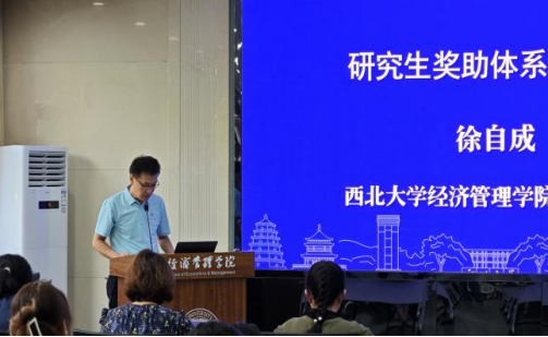 学院党委副书记徐自成介绍了学院毕业生就业状况及奖助体系。徐自成从学院毕业生的就业率、毕业去向、就业行业等方面详细介绍了学院毕业生就业状况。虽然大环境较为严峻,但我院硕士就业数量、质量都较高,就业形势整体向好。徐自成表示,学院将秉持“学生是兴院之源”的院训,为每一位学生提供优质的教育资源和全面的成长支持,希望同学们留院深造续写辉煌。