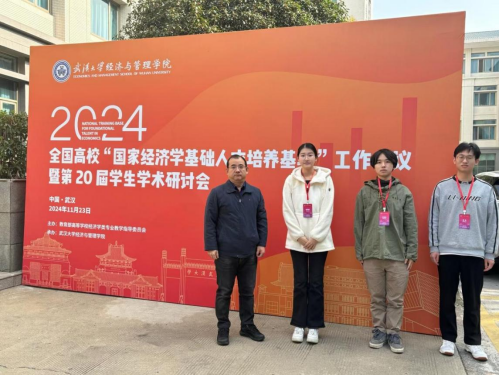 由教育部高等学校经济学类专业教学指导委员会主办,武汉大学经济与管理学院承办的全国高校“国家经济学基础人才培养基地”工作会议暨第20届学生学术研讨会于2024年11月23日召开。北京大学、复旦大学、中国人民大学、南京大学、武汉大学、南开大学、厦门大学、上海财经大学、西南财经大学、辽宁大学、吉林大学、福建师范大学与我校等近20所高校参会。会议围绕国家经济学基础人才培养的战略规划、学科发展、教学创新等议题展开深入研讨。经济学系主任高煜教授、高杨教授与基地班3位同学代表我院参加了此次会议。高煜教授在会议上就我院经济学基地班的专业建设、教学创新、人才培养、未来发展等问题与各院校进行了深入交流。
