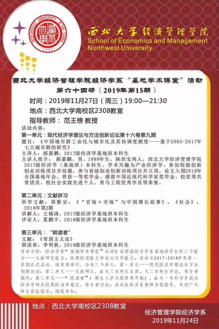 776net必赢官网经济学系“基地学术课堂”活动第六十四场(2019年第15期)