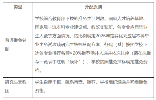 根据教育部下达的2026年推免生名额,综合考虑学科专业发展需要,我校推荐指标分配原则制定如下: