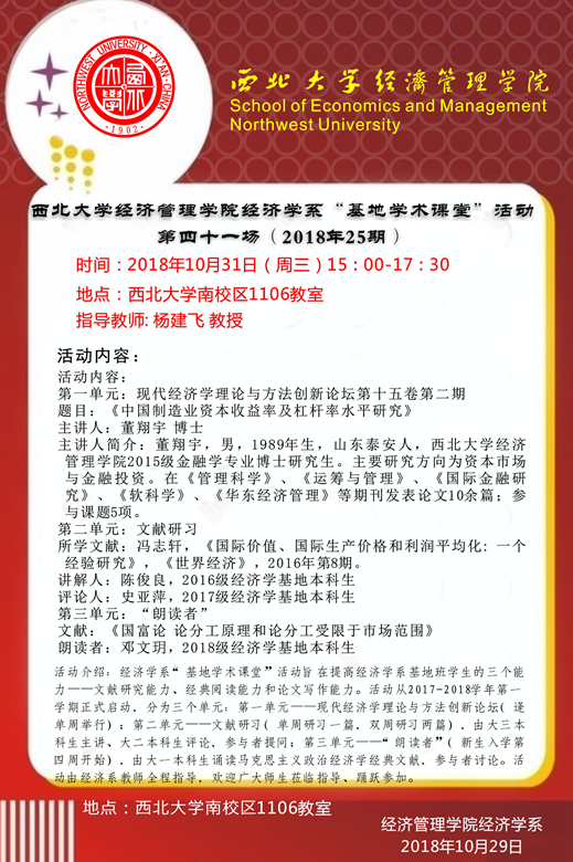 776net必赢官网经济学系“基地学术课堂”活动第四十一场(2018年25期)