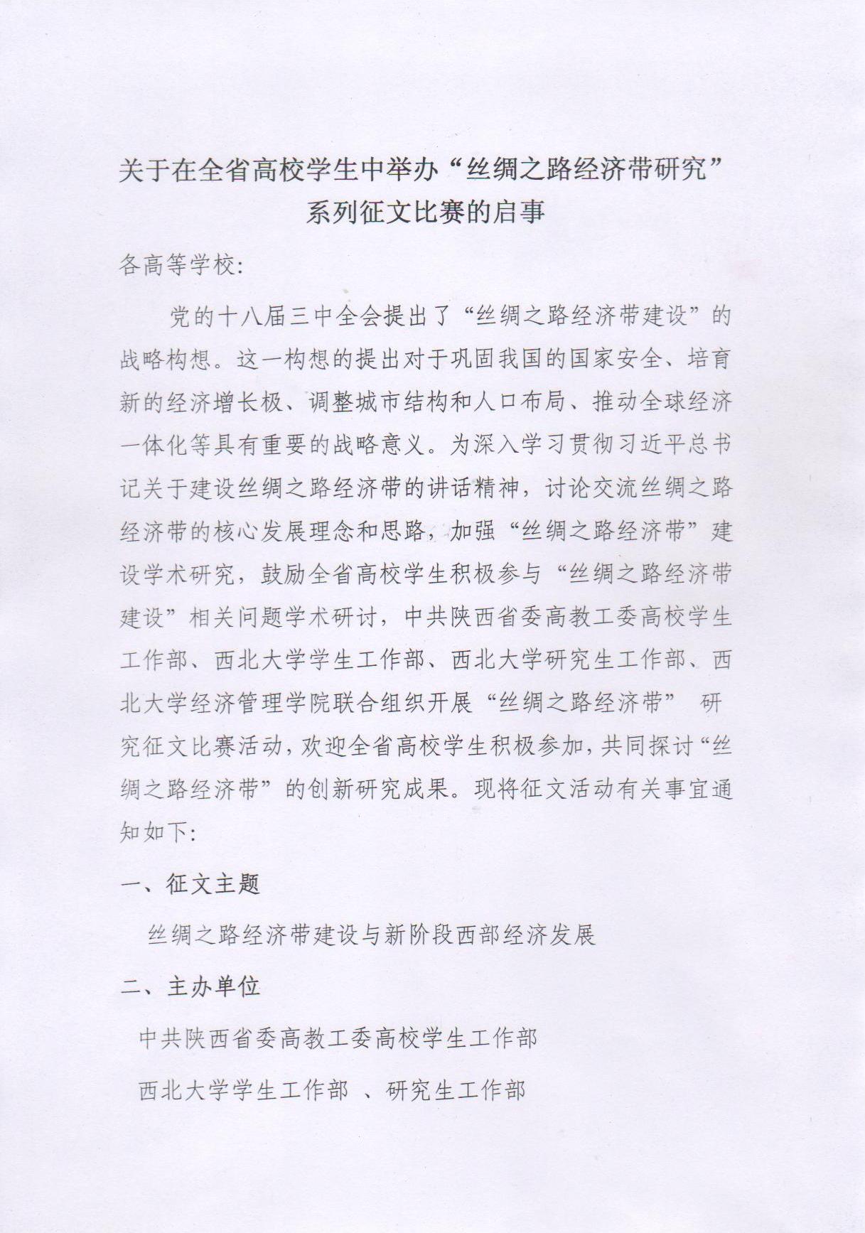 关于在全省高校学生中举办“丝绸之路经济带研究”系列征文比赛的启事