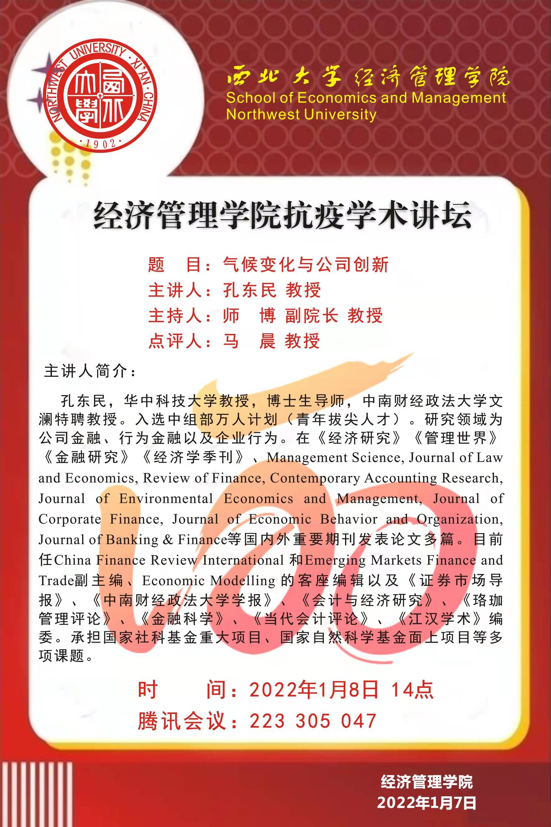 776net必赢官网抗疫学术讲坛--气候变化与公司创新