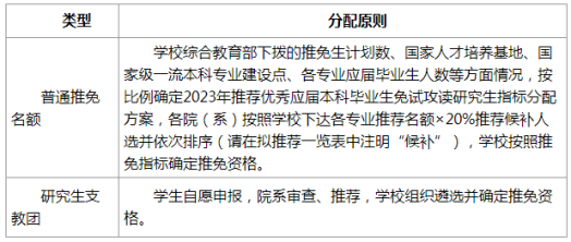 根据教育部下达的2023年推免生名额,综合考虑学科专业发展需要,我校推荐指标分配原则制定如下: