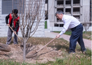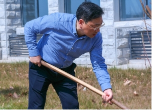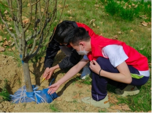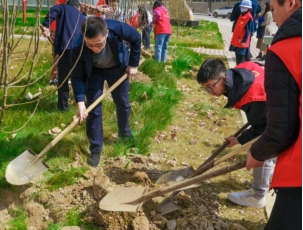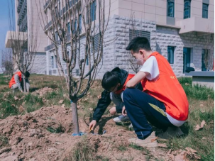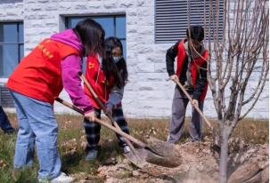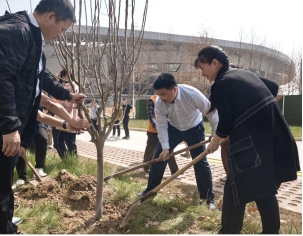 在习习的春风中,参与活动的师生们分工协作,整地挖坑、培实新土、扶正树苗、挥锹培土、提水浇灌,共同将一棵棵海棠成功栽植。现场不时响起师生们参加劳动的欢声笑语,讨论着来年的春天“楼前燕子飞,海棠香满园”的美好景象。