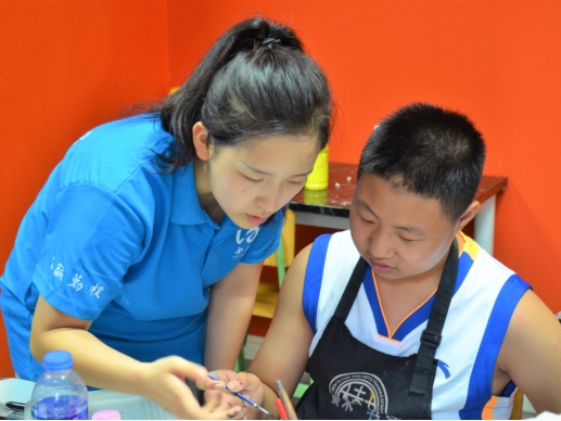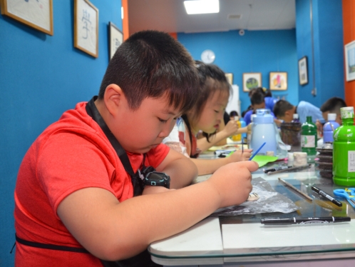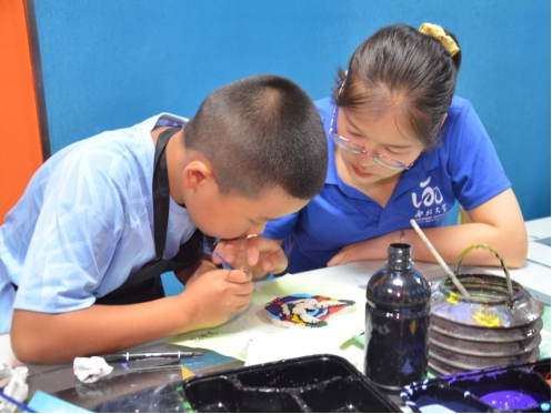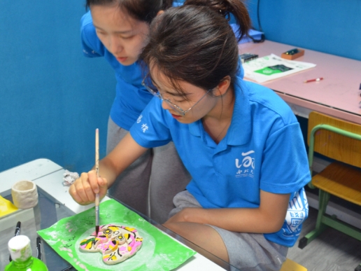 7月26日,团队成员带领孩子们对昨天的内容进行了简单的复习之后,对上一次课程的遗留问题以及本次课程的内容进行了深入的讲解。鼓励学生积极主动参与创作。学生们在描绘挂虎泥塑过程中遇到困难积极主动地向老师提问,在挂虎泥塑身上大胆地尝试不同色彩,充分展现出了自己独特的风格,为挂虎泥塑赋予了更加鲜活的生命。通过讲解与学生创作,孩子们纷纷表示在此次的课程中学习到了很多关于凤翔泥塑的知识,也真切的感受了泥塑的魅力。在本次课程结束后,通过填写问卷与访谈的方法,了解孩子们对于本次课程的感受与体验。