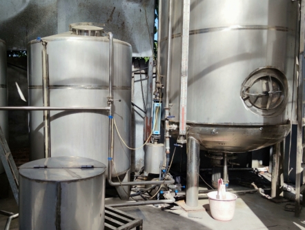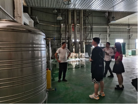 随后,实践队队员参观了加工车间。这家公司的工厂内部其实不算大,但是却被分成了原料库、整料车间、酒精发酵车间等多个车间,企业创始人向实践队队员介绍每个车间的不同用途。目前该工厂还有大量加工环节是人工处理,为了提高产能和效率,该工厂也正在筹建一个更现代化的二期工厂,加强自动化和机械化水平。