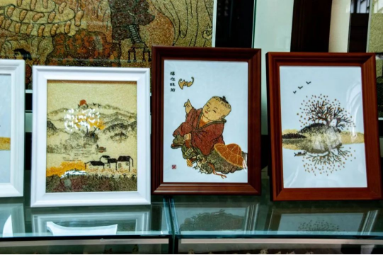 米脂小米,除了可以制作成各色小吃,还可以怎么利用呢?在米脂婆姨手中,小米不仅可以是食材,还可以是作画的原料。据了解,米贴画和剪纸为当地的百姓提供了新的就业机会,能够留住年轻人为家乡的发展出力出策。2022年以来,米脂县先后举办两次米贴画培训班,愿意长期从事米贴画制作的米脂婆姨留在工坊工作,赚取收入提高家庭生活水平。有不少制作者是年轻宝妈,在把孩子送进学校和接孩子放学之间的这段空闲时间,她们争分夺秒赶到工坊上班,推动米贴画融入全域旅游发展中。摆件、挂件、背景挂画等手工艺品已成为当地的名片,通过线上线下渠道进行出售。据负责人介绍,好的作品价格高达五六千,以手工艺品为载体,传承传统手工艺,带领更多的群众增收致富。