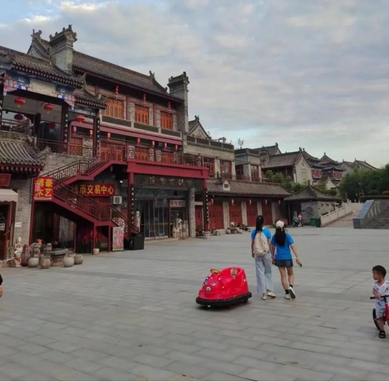 渭南老街地处渭南市区沋河岸东部区域,坐落在闻名遐迩的渭南市长寿塬脚下。景区整体以中国传统明清民居建筑风格为精髓,将历史文化与现代商业水乳交融,这里保留着完好的鼓楼和大雄宝殿,充分展现地方特色和浓厚的历史底蕴。老街项目的主要业态为各县市区的非物质文化遗产展示区、原生态作坊体验区、古玩字画区、独具特色的四合院主题酒店等。本次实践活动“相遇渭南,‘乡’见未来”小分队在渭南老街选择的实践地点是老街戏楼和古玩字画区,用以深入了解老街的文化特色,感受渭南人文历史。