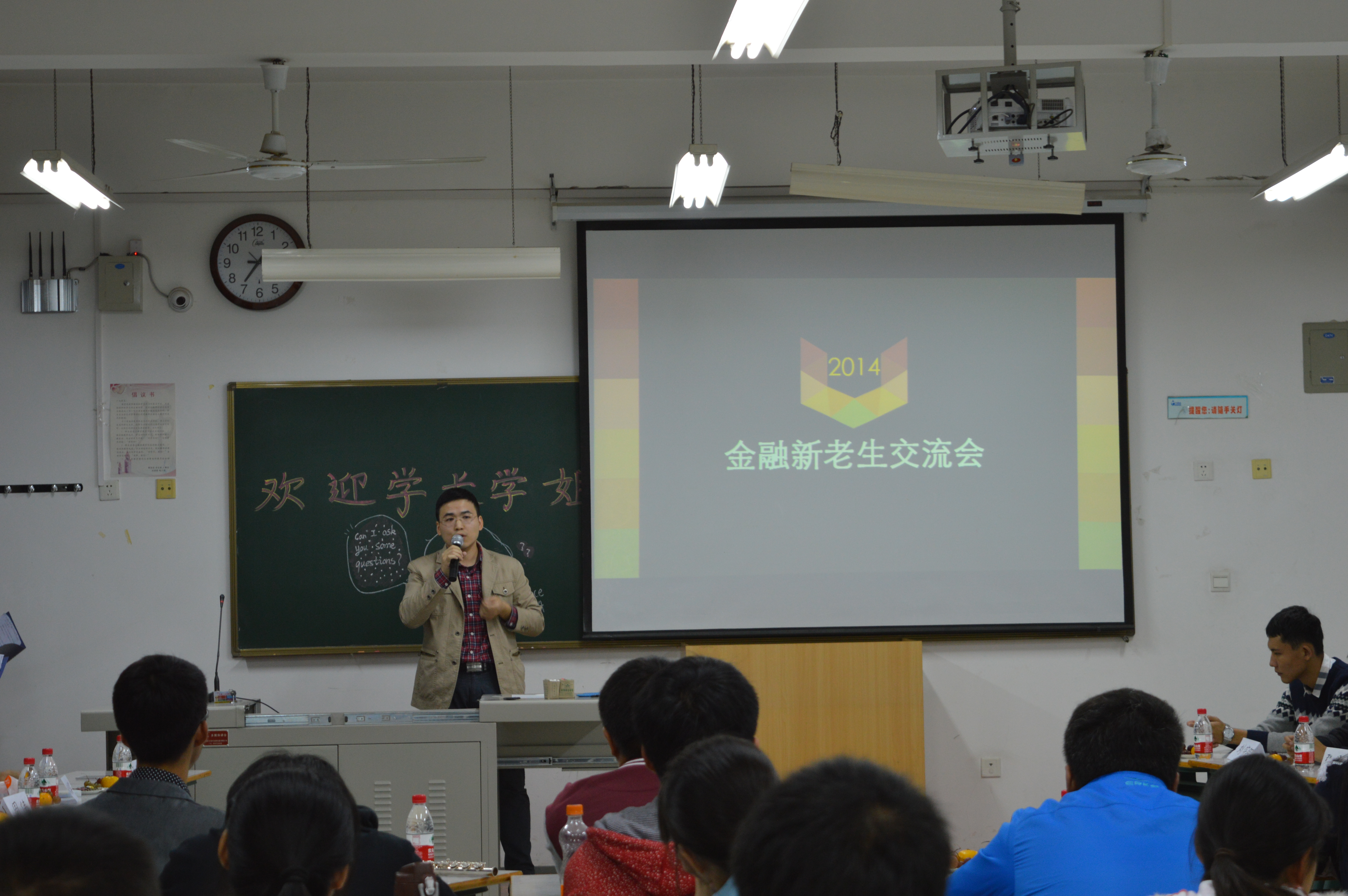 在近两个小时的交流过程中,各系青年教师首先向大一新生传授了学习与生活等各方面的经验,新生们踊跃提问,老师们一一作出悉心解答。高鹏老师向新生介绍了关于信管专业的历史,发展概况,有关专业知识,就业方向,详细的介绍了信管人在各个领域的优势与发展潜力,也对14级新生寄予了很大的希望。石阳老师结合自身在上海财经大学研究生的经历和金融专业的特点,告诉大家三个方面需要注意:一是一定要扎实掌握专业知识,尤其是基础理论知识。二是丰富自身实习经验,多做实践。三是一定要提升自己的英语水平,要有国际化视野。其他青年教师也就本专业的基本情况和教学学习体会作了详细的讲解。接下来,高年级同学进行了学习经验介绍并与新生同学开展了积极的互动交流。同学们交流内容全面具体,主要涉及各科目学习方法、学习计划的制定、大一学生学习特点、学习与工作时间的分配、就业方向等。2012级金融班的陈琛同学在分享自己的学习经验的同时还着重提醒了大一打好基础的重要性,激励同学们养成良好的习惯。张思琪同学则在英语学习方面具体进行了心得分享,热情的言语,丰富的经验把大家的英语学习热情重新激发。其他同学也做出了精彩发言。最后,同学们采取分组讨论、才艺表演、团训游戏等形式将交流会推向高潮。