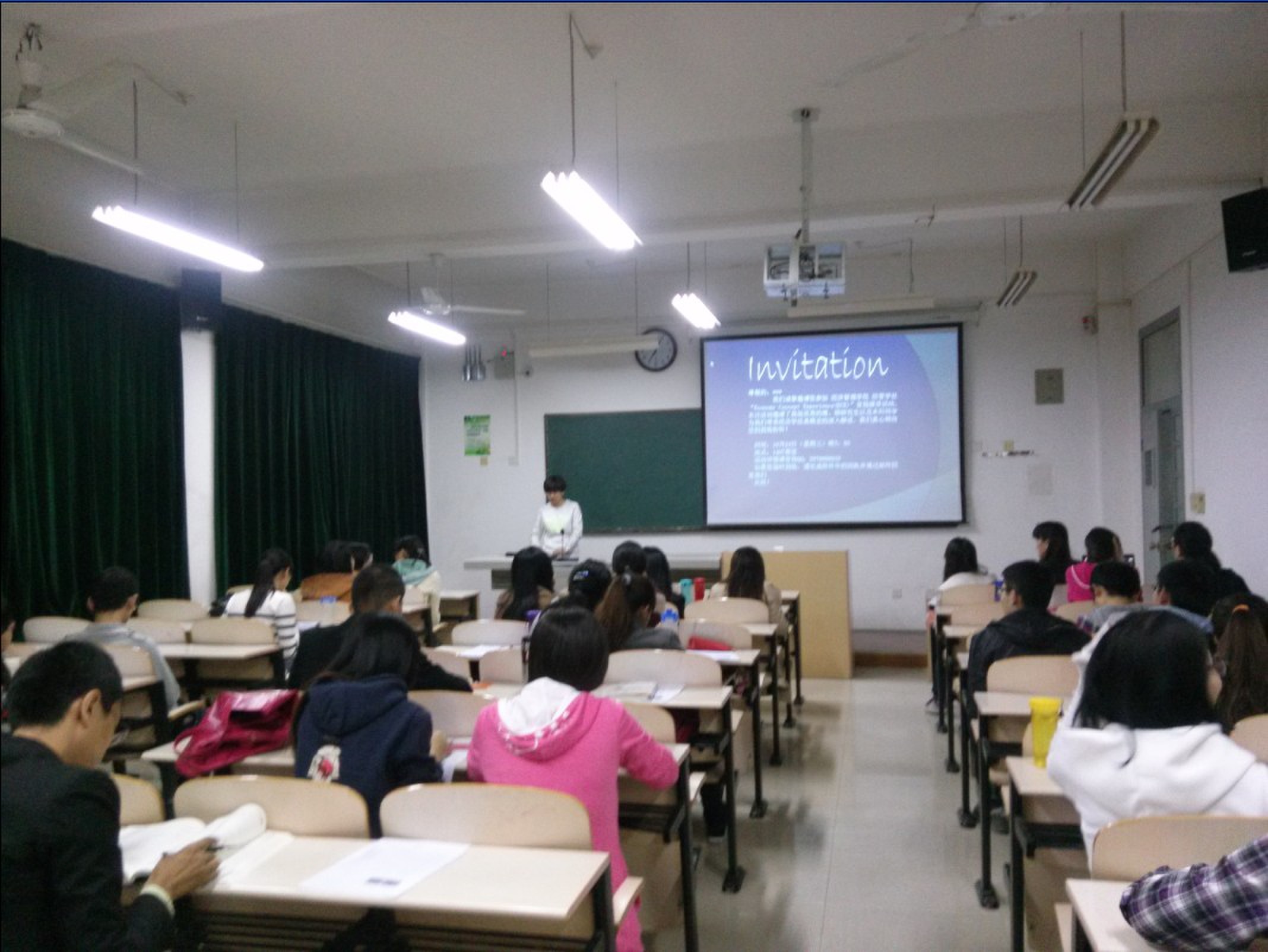 我院经管学社“ECE(Economic Concept Experience)”第一期于10月23日晚七点在长安校区1407教室举行,活动邀请了博士生石莹、硕士生赵欢、王竹君、张馨宇和王茹为大家带来了精彩的演讲。30名余研究生参加了本次活动。