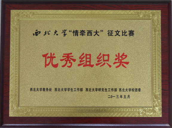 2013年5月29日,在学校举办的“情牵西大”征文比赛总结表彰大会中,我院多名同学获一、二、三等奖和优秀奖,学院获优秀组织奖。在本次活动中,我院学生投稿数量、获奖人次和获奖层次均居全校首位,很好的展示了我院学生积极进取、爱校荣院的精神风貌和良好的文学素养。
