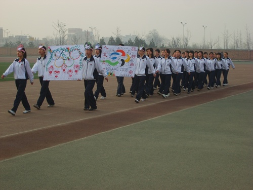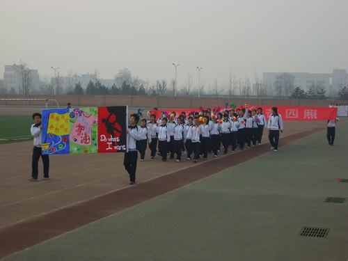3月15日,776net必赢官网2008年新生田径运动会在南校区操场拉开帷幕。上午8时,运动会开幕式正式开始,在主席台就座的有院团分委书记李宝星,2006级学生辅导员史暐、2007级学生辅导员张洪杰、院学生会主席曹相辉和副主席陈陶然等。在运动员进行曲的乐声中,2007级全体同学以班为单位,迈着整齐的步伐步入会场。各班的入场仪式都别出心裁,口号横幅更是各有特色,如工商班的“称王有汉唐,争雄属工商”、金融班的“魅力金融,独树一帜”、会计班的“群英‘会’萃,‘计’高一筹”等。同时各班自行设计的宣传展板多与奥运精神相结合,体现了同学们对北京奥运会的期待和支持。