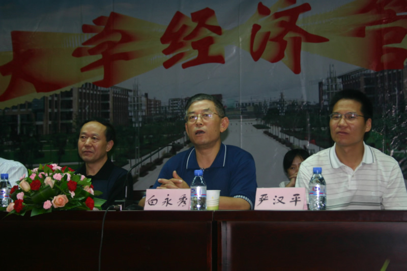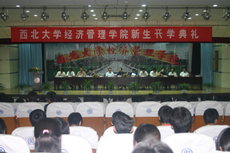 开学典礼在雄壮的国歌声中开始,院长、博士生导师白永秀教授作了热情洋溢的讲话,白院长介绍了我院的历史和发展现状、教学机构、师资队伍、人才培养以及近期申报博、硕士点的情况,并对新生们提出了殷切的希望:一是要树雄心、立壮志,树立远大理想;二是要尽快适应新环境,转变学习方法,逐步提高综合能力;三是要增强独立生活能力,关心国家大事,关心集体;四是要遵纪守法,做遵守纪律的模范;五是要讲文明、树新风,展示当代大学生新形象;六是要加强锻炼,强健体魄。