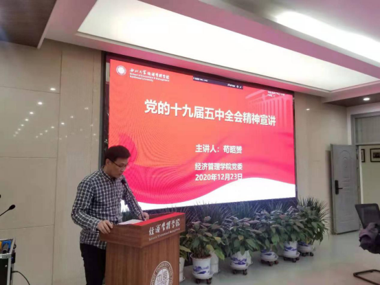 本次宣讲报告会是经管学院党委学习贯彻落实党的十九届五中全会精神系列活动之一。旨在激发广大青年党员和青年学生学习宣传贯彻全会精神的高潮。促使学院上下统一思想,凝聚共识,将全会精神融入到全院师生工作和学习的实践中,为学校学院事业发展贡献力量。