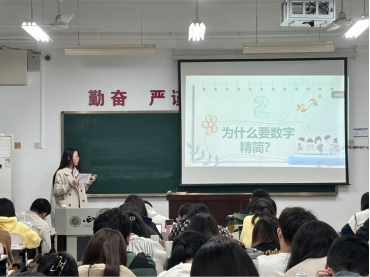 第六位徐泽同学,她的题目是《数字精简:重新定义生活方式》,她为我们列举了一些生活现象,表明数字精简的必要性,同时就为什么进行数字精简发表了看法。数字精简能让大学生摆脱信息过载的困扰,集中精力于学业,避免在海量无用信息中迷失。
