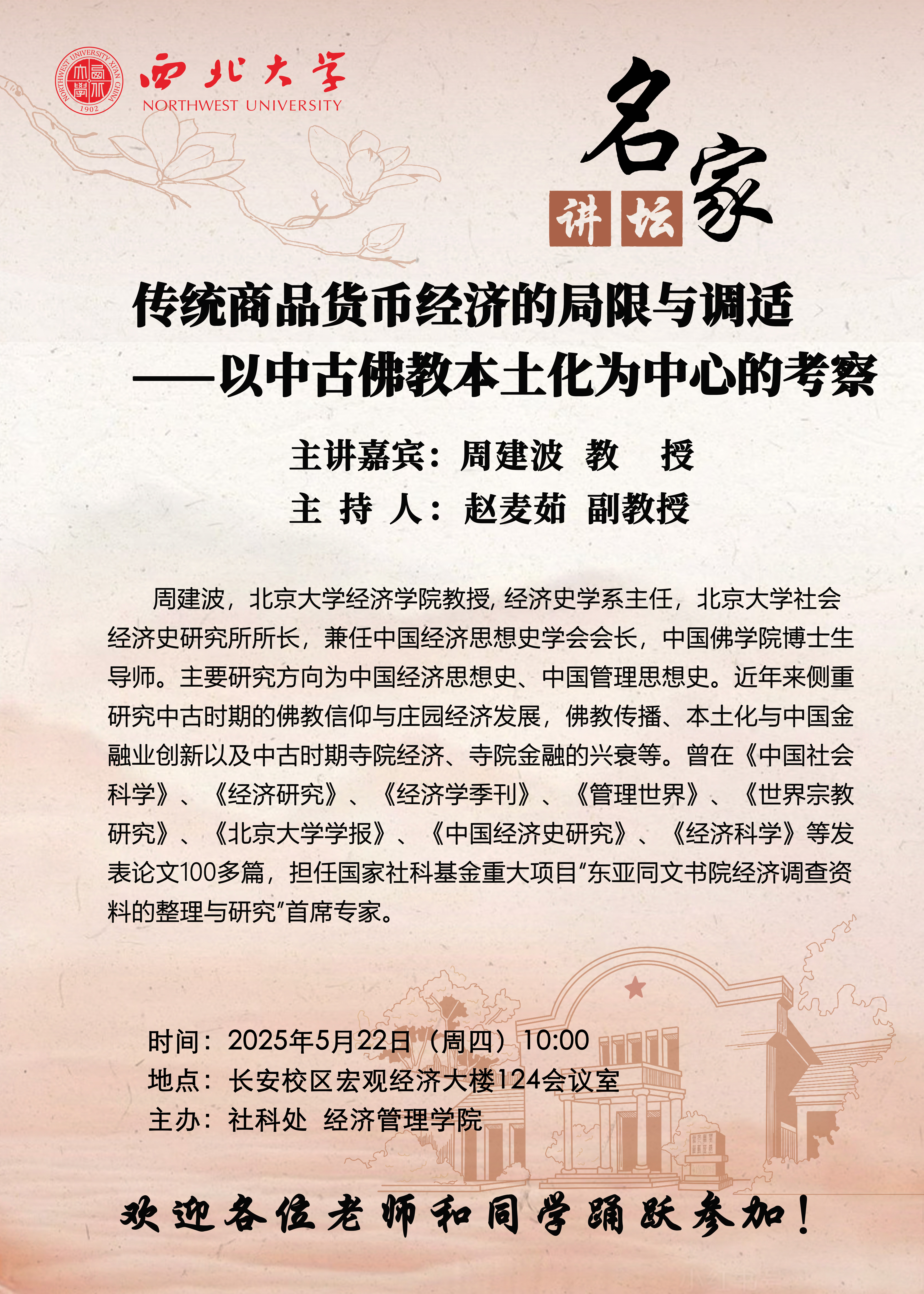 名家讲坛---传统商品货币经济的局限与调适--以中古佛教本土化为中心的考察